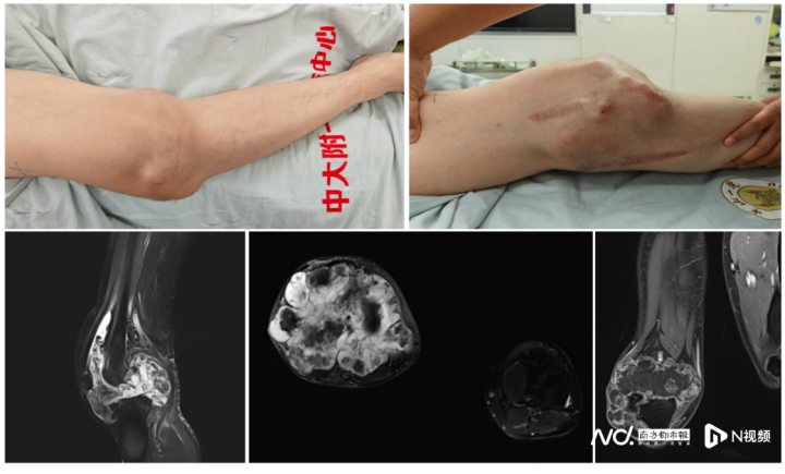 39岁的K先生(化名)一直在澳大利亚工作生活,2014年在海外首次被诊断为右胫骨近端低级别软骨肉瘤,并接受肿瘤切除手术;2016年肿瘤复发,再次进行手术治疗。2020年,肿瘤第二次复发,当地医疗机构评估认为病变范围广泛,保肢难度极大,提出截肢方案建议。“巨大的肿瘤让我先生的右腿很难伸直和弯曲,为工作和生活都带来了影响。第二次复发后,我们跟珀斯、墨尔本、悉尼的医院都问询过,医生都是提出截肢方案。”K先生的夫人表示。
